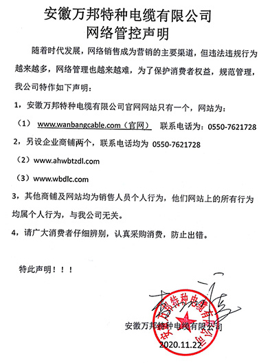 鄭重聲明:安徽萬邦特種電纜有限公司官方網站為:www_wanbangcable_com.tnxrvhd.cn,除此之外無任何子網站或合作網站,其余均為假冒偽劣。電話:0550-7621728 13485756353 地 址:安徽省天長市滁州高新技術產業開發區經四路29號